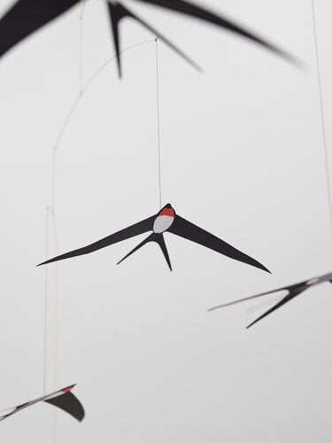 This classic mobile of flying swallows was designed in 1963 by Christian Flensted. Lightweight cardboard, it spins gently evoking a flock of birds. Made in Denmark.