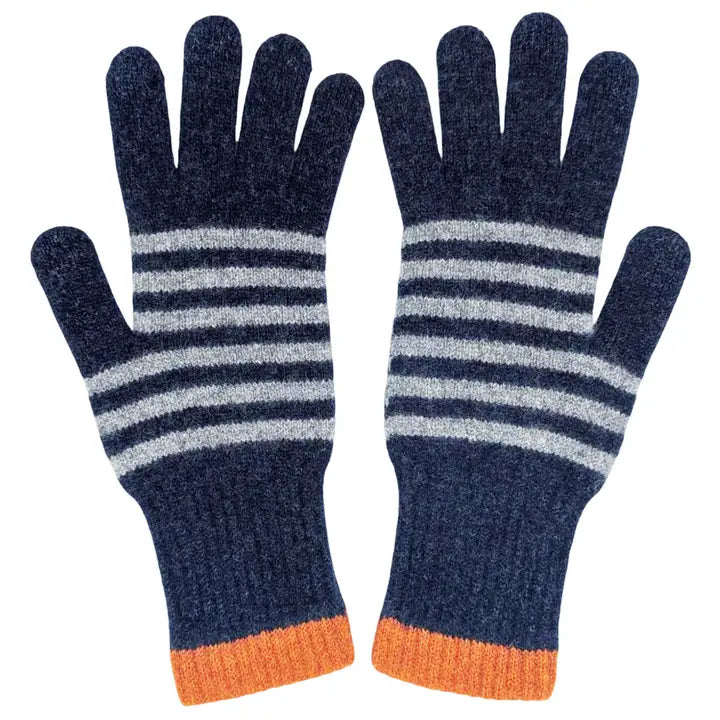 Cozy soft lambswool knitted gloves, sized for women. Choose your favorite striped color combo. Hand wash or dry clean. Expertly knitted in Scotland.